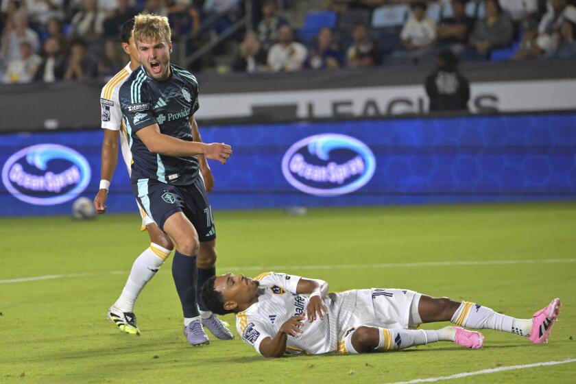 And for much of the monthlong competition that worked, with the Galaxy cruising into the tournament semifinals unbeaten. But reality and the Seattle Sounders caught up with them Wednesday, when goals from Pedro de la Vega and Osaze De Rosario gave Seattle a 2-0 victory and a spot in Sunday’s Leagues Cup final against Lionel Messi and Inter Miami.