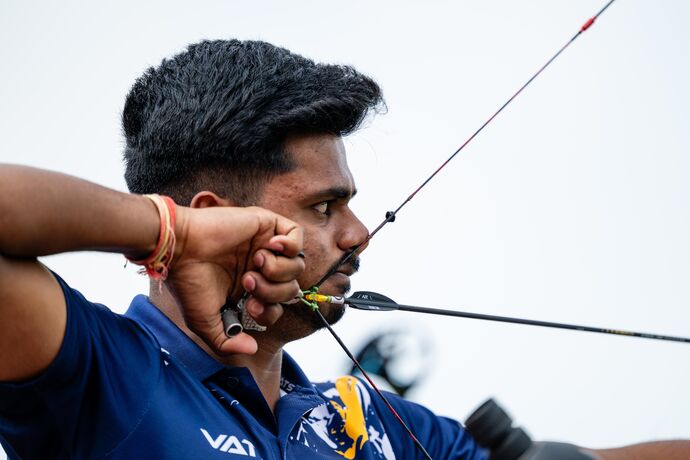 Across the five ends, only three combined nines were shot by both archers in Essen, the pair displaying impeccable focus and accuracy. Jadhav dropped one, Scott two.