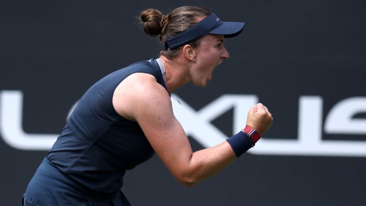 EASTBOURNE, England — Wimbledon champion Barbora Krejcikova saved match points for the second successive day against a British opponent to reach the quarterfinals of the Eastbourne WTA 250 event on Wednesday.