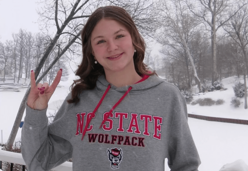“I am beyond excited to announce my verbal commitment to continue my athletic and academic career at NC State University. I want to give the biggest thanks to my friends, teammates, family, Coach Keller and Coach Alec for always supporting me. I also want to give a huge thank you to Coach Braden, Coach Stef, and the whole NC State coaching staff. I am so grateful for this opportunity and can’t wait to be apart of this amazing team. GO PACK!!!”