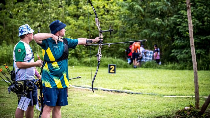 Archers shot an unmarked round in the morning, then the same round marked in the afternoon. Conditions in Chengdu were again extremely hot and humid, and a towel was the most vital accessory for archers shooting today’s qualification.