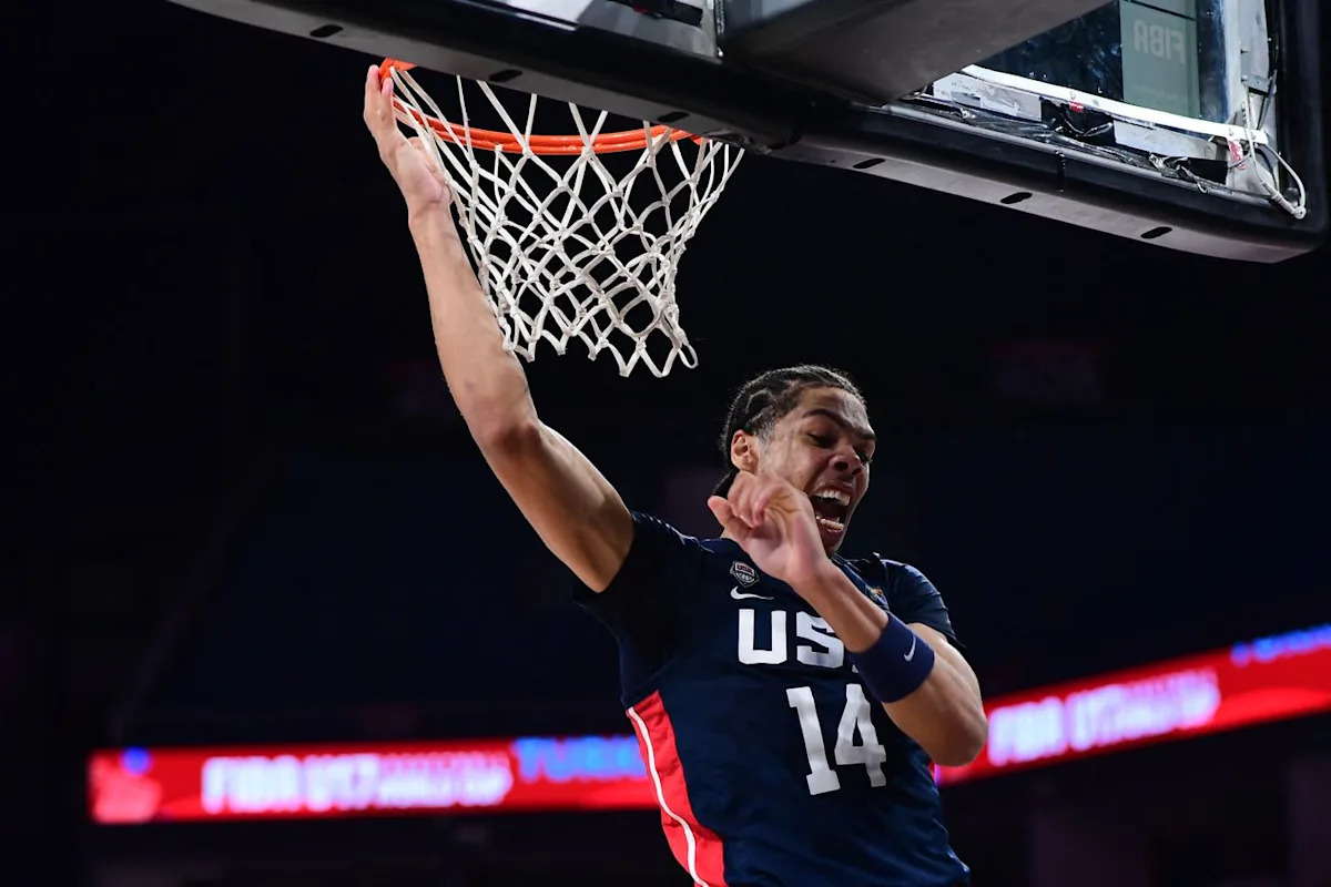 Well, he’s the top recruit in the country for very good reason. Physically, he’s built like a tank, six-foot-eight, somewhere between 235-245 lbs., seven-foot wingspan, and an explosive vertical leap. He certainly doesn’t look it, but the dude must be built out of cannonballs and moon rocks. Imagine if Michael Ajayi somehow put on 20 lbs of muscle. That’s Stokes. Offensively, he’s a downhill playmaker who finishes through contact, rebounds aggressively, and finds teammates in space. He averaged 21 points, 9.3 rebounds, and nearly 4 assists last season for Notre Dame High School in California. He then followed that up with a starring role for Team USA, where he became the first player in U19 history to record a triple-double and averaged 12.2 points in just 18 minutes per game. His EYBL numbers back it up too—20 points, 8.3 boards, and top-ten scoring across the entire circuit. Every level he touches, he produces.