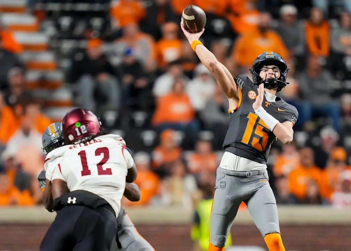Heupel said MacIntyre received “a heavier load” of practice reps during the open week following Tennessee’s 33-27 loss to Oklahoma on Nov. 1 before the Vols got back on the field two weeks later. He was the third quarterback to play against New Mexico State, following starter Joey Aguilar and redshirt freshman Jake Merklinger.