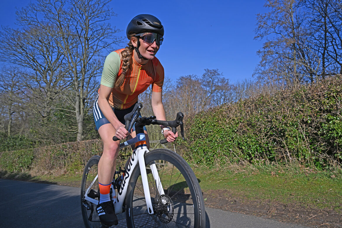 Sara Catriona grew up playing 11-a-side football but after too many injuries switched to beach football. She now plays beach football for England, so needs to be able to run efficiently on sand. It is a heavily quad-dominant sport. “That’s why cycling is so good,” Catriona says.